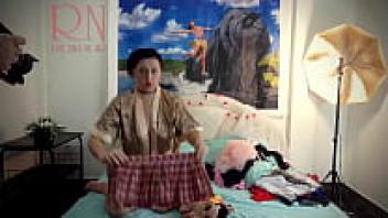 With an elegant display of her charms, the lady changes her panties. Sexy clothes and lingerie were spread out on the bed by the housewife. C 1