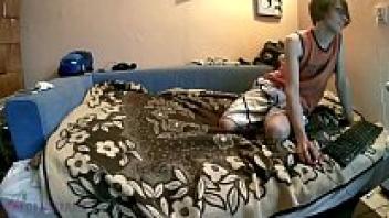 In the bedroom, two twinks are having a good time, and they both cum