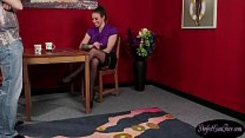 Redhead blows her therapist away with cock sucking.