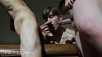 During a kinky threesome, obedient twinks were adored unconditionally.