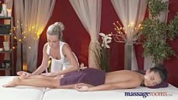Rooms for Massage Cute brunette is filled with oily fingers by a sexy blonde lesbian.
