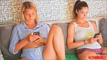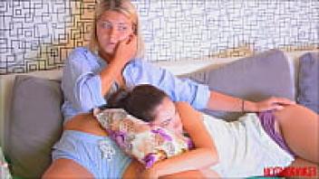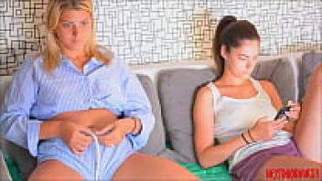 In front of the camera, a gorgeous stepsister with large tits and white stockings spreads her legs and engages in sexy masturbation.