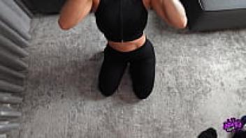 After working out, a gym gilf sucks the cock of a trainer.