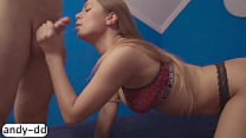 A young, attractive girl sucked a big dick and soiled her entire body.