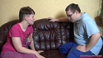 Her glassed overweight roommate with a little dick is in love with the ugly, plump babe.