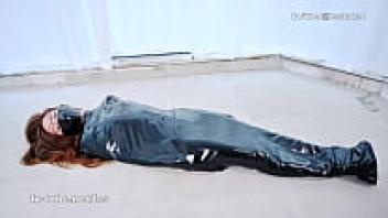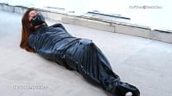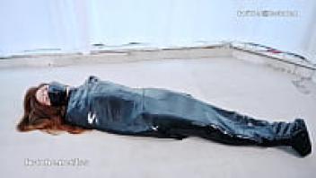 Lady Bondage in a sleeppack wearing an Asian latex catsuit