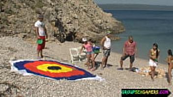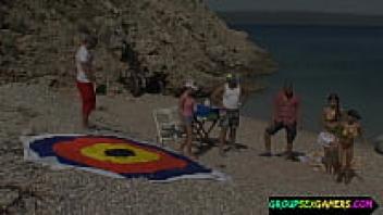 Amateur MILFs in group orgy eating fat dicks while wearing blindfolds