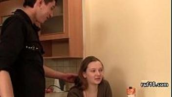 Teen with a great figure having hardcore rough sex while wearing lovely stockings