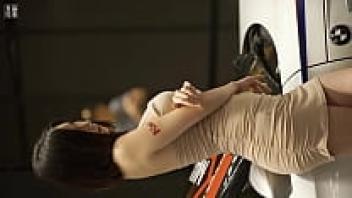 Loved by a submissive Asian girl in a public hotel restroom