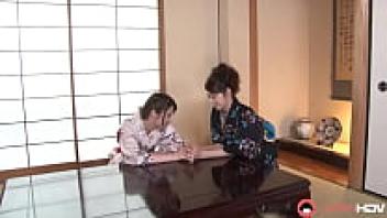 The stepson of a mature Asian brunette mother fills her hairy cunt.