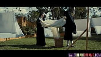 Jenna Sativa and Megan Rain, two lustful lesbian girls, lick and play with their attractive bodies in clip 15.
