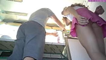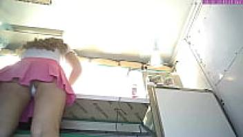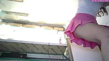 Stupid eighteen-year-old bitch wearing a pink miniskirt and a hidden voyeur camera upgown
