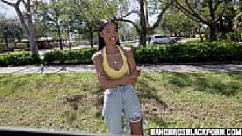 TINY BLACK CASTING Teenage bends to get the affection she's been longing for and suck big black cock.