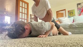 Rough sex with her muscular, huge-cock personal trainer as a hardcore amateur blonde Latina with big boobs and a big ass