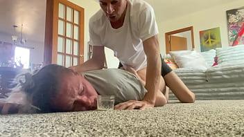 Fingering and spanking a girl who is confined