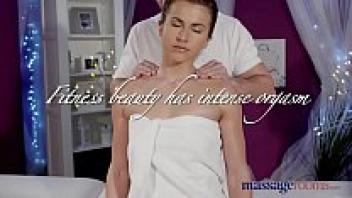 Fitness beauty with a taut figure experiences a powerful orgasm in a massage room.