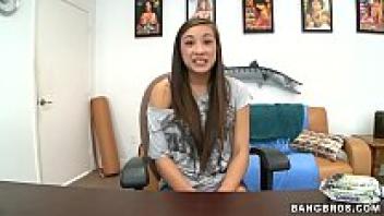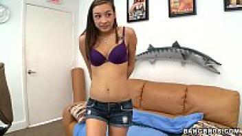 A young Asian woman who is petite and has small tits attempts anal casting.