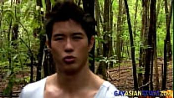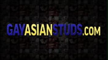 Asian dude stroking that is muscly gay