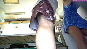 beneath a skirt without underwear. In nature, a large ass and hairy pussy in a short dress climb mountains.