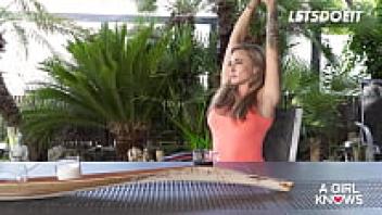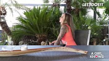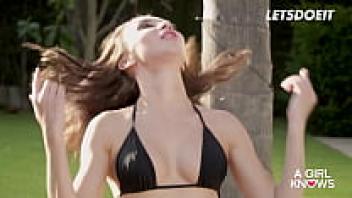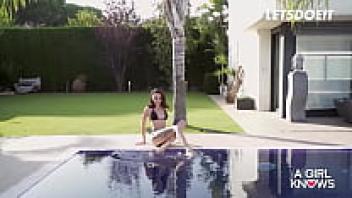 A girl knows that Katrin and Isizzu, two attractive girlfriends, enjoy hot lesbians outside by the pool.