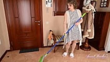 The 44-year-old Full-Bush MILF Yulenka, Aunt Judy, cleans the house (upskirt & underwear).
