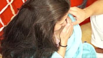 During a relaxing massage, a very attractive brunette becomes aroused and sucks the masseuse's firm dick.