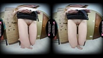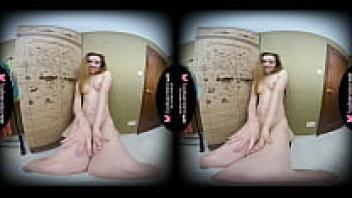 In virtual reality, a lone brunette adolescent named Vika Lita is massaging her shaved pussy.