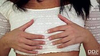 Emma Green, who is quite attractive, teases with her shaved pussy and big tits.