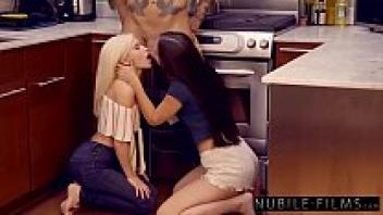Her large dick classmate deceived two adorable girls, both 18 years old, into having ffm threesome sex.