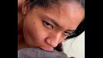 My girlfriend gives an amateur blowjob, and we watch as she sloppily slips the entire cock in her tough throat.
