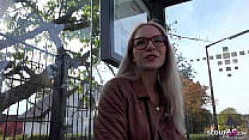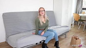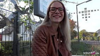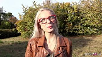 GERMAN SCOUT: Vivi Vallentine, a blonde girl wearing glasses Talk to Casting Love and pick them up.