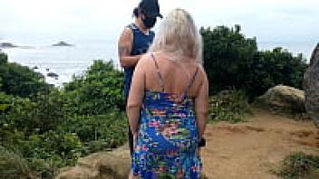 A massive dick loves a milf's ass on a public beach.