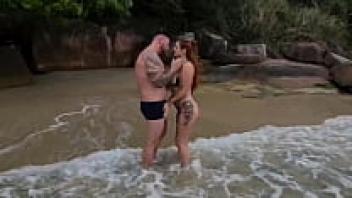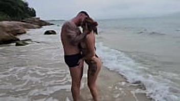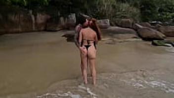 A sexy Cubanita couple on a public beach in Spain