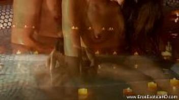 With affection and a blowjob, a cute girl provides an erotic oil body massage.