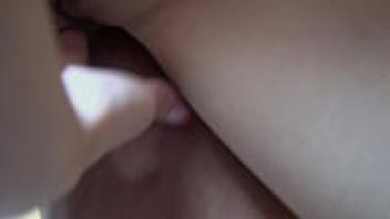 My lovely, skinny girlfriend is riding my cock and sucking it.