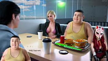 In public, a lustful stepmother is seen showing affection for her son! Threesome! - Santa County Life - 3D Hentai Animated Porn