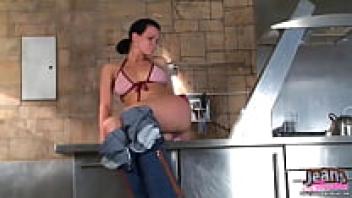 My teen body is tightly hugged by my new tiny jeans.