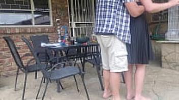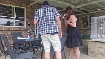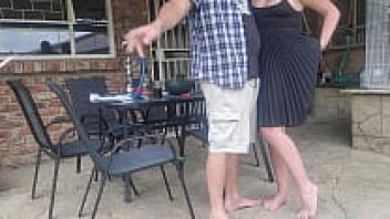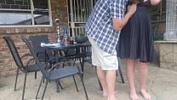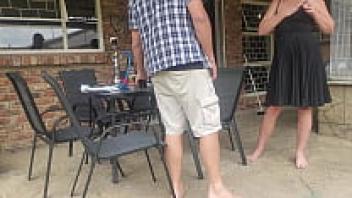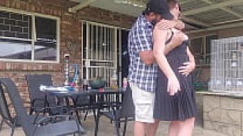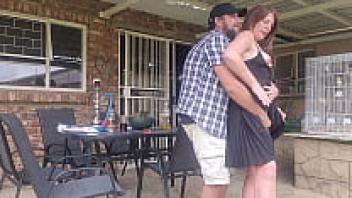 An actual sex tape shows a man making love to his neighbor's wife in the backyard before bringing her inside for a passionate kiss (full video on RED).