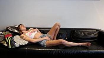 Calliope, a gorgeous Yank girl, plays with her pussy.