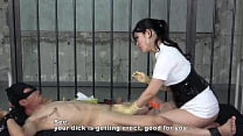 The patient gets a hand job from the nurse, which causes him to ejaculate three times.