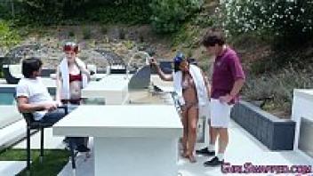 OOPSIE: Stunning Yoga Women Join BDSM Couple for a SQUIRTING FOURSOME AND INTERRACIAL CUM SWAP!