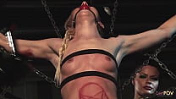 During a BDSM gangbang, ecstatic lesbian slaves worship their master and give in to her.