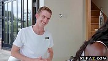 A large dick masseuse stuffs Ebony MILF's pink pussy.
