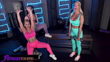 MILF and Lady Gang Fitness Rooms Lesbian threesome at Emily Bright's gym
