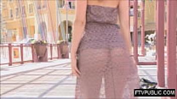 Plug-in Fishnet Pantyhose Pee with Public Solo Upskirt Flashing Ass