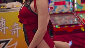 Cici, an erotic Chinese housewife with large tits, plays with a hard cock.