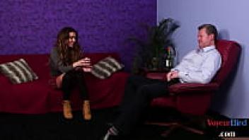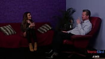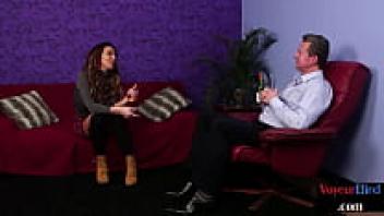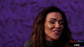 When someone wanks and cums on her, Voyeur's busty MILF touches her pussy four times.