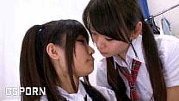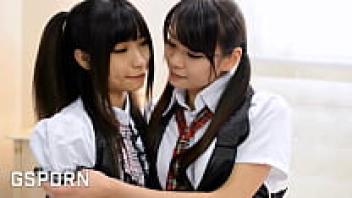 Two teenagers engage in double dildo and strapon lesbian sex at a Japanese school.