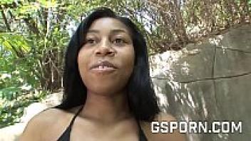 Outdoor Interracial Hookup: Big Tits Black Hottie Hairy Pussy Pounded