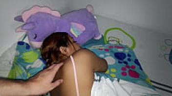 While she is playing by herself in her room, the 18-year-old girl's stepfather enters, rides her on his dick, and cums within her